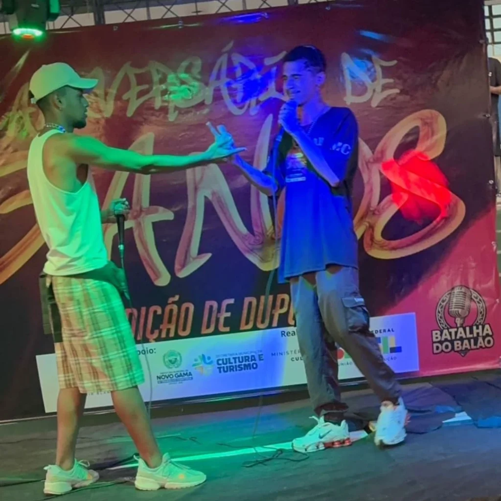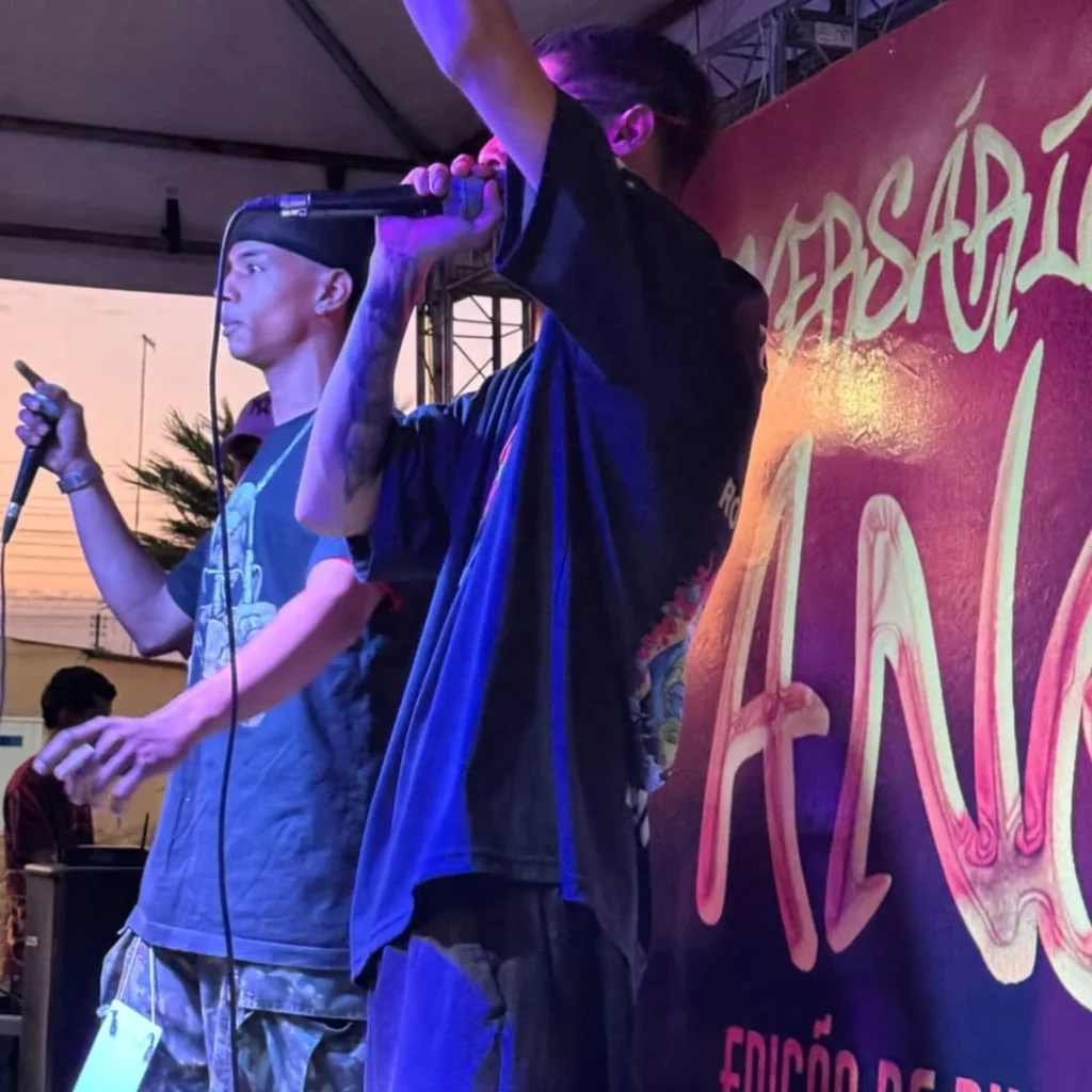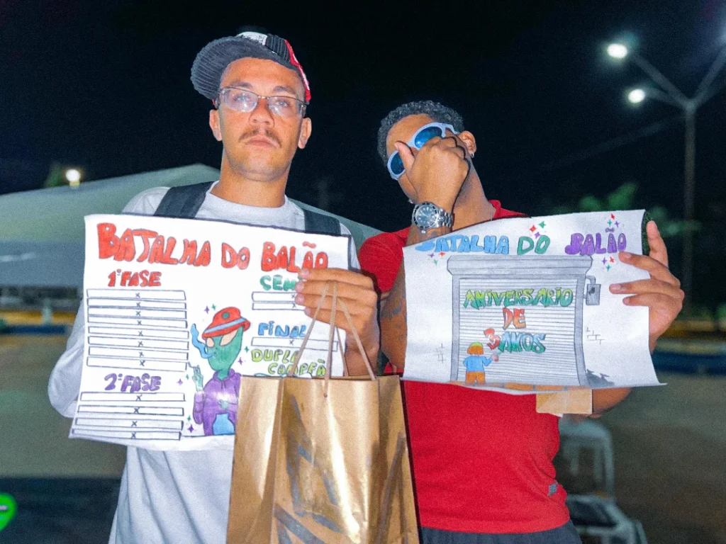 Na competição, o público vibrou com cada duelo de rimas, marcado por criatividade, improviso e muito talento. Ao final, a dupla Pretyn e Diogo sagrou-se campeã da edição de aniversário, consolidando-se como destaque da cena e levando para casa o troféu do “Balão 3 Anos”.