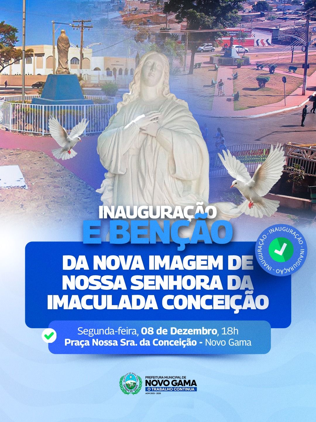 A comunidade de Novo Gama está convidada para um momento especial de fé e devoção: a inauguração e bênção da nova imagem de Nossa Senhora Imaculada Conceição, Padroeira da cidade. O evento acontece na Praça, em frente à Igreja Matriz, às 18h, e promete unir moradores em um gesto de respeito, gratidão e profunda renovação espiritual.